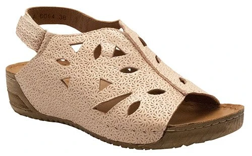 Slingback sandal with leather uppers that feature a beautiful pattern and striking cut out detailing.