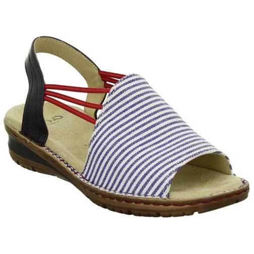 Casual sling back sandal with leather and elastication for an adjustable fit.