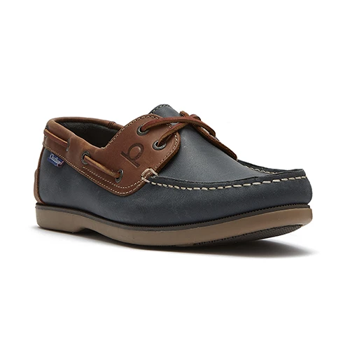 Crafted from premium navy blue leather with tan collar and back counter, this two-eyelet style has tan leather laces and side lacing, contrast stitching, Chatham tab detail and a brown rubber sole. Whitstable also features a sole spring poron performance cushioning, which is anti-bacterial and offers maximum comfort and shock absorption.