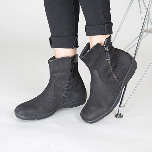 Versatile boot with soft and flexible suede or leather uppers. Dual zips provide easy access. Removable “air-comfort” cushioned insoles for the insertion of orthotics or to provide extra depth.