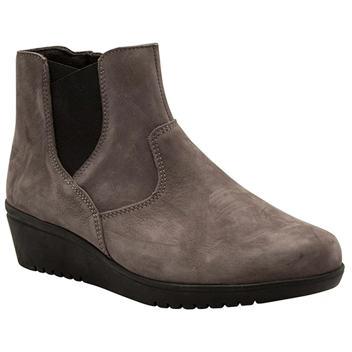DB Easy B Tornado is a casual ankle boot available in a choice of Black Leather or Grey Nubuck. It benefits from an elasticated panel for flexibility of fit and zip fastening for easy access. Variable fit, by removing the extra insole the fit can be changed from EE wide to 4E extra wide and deep fit. Comfortable wedge outsole.