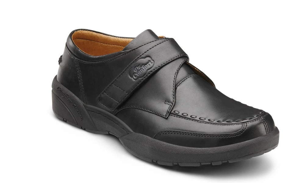 Timeless, sophisticated leather dress shoe with fine-detailed stitching and high-polished leather. The Frank features a hook and loop closure for a personalised fit, while the protective, roomy toe box helps prevent foot irritation and the padded collar and heel delivers a secure, comfortable fit.
