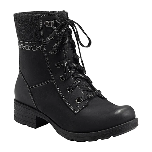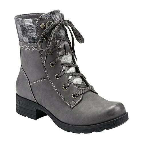 The Earth Origins Rowan is a causal biker boot style with a stylish plaid collar.