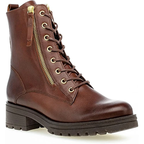The Gabor Serve ladies biker boots are crafted from leather and feature metallic gold zippers for extra detailing.