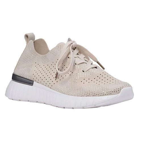 Contrast metal accents and a white outsole provide an on trend look. Soft microfibre linings and removable cushioned footbed.
