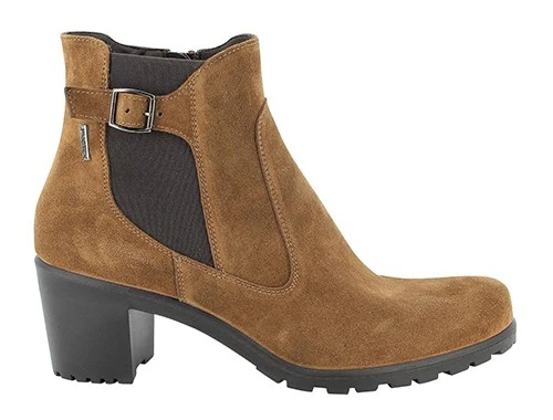 Stylish Italian adjustable elevated Chelsea boot with luxury Italian leather uppers and a stacked half moon heel.