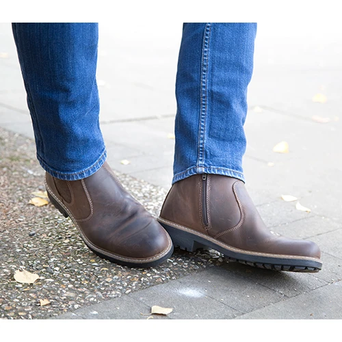 Stylish Chelsea style boot for men with premium, water resistant nubuck uppers, elastication for adjustment and an inside zip for easy access. Durable rubber outsole.