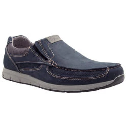 Lightweight casual slip on with nubuck uppers and breathable textile linings. Discreet elastic panels provide an easy on fit. Durable rubber outsole.