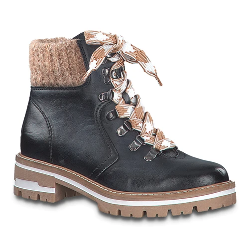 Casual ankle boot with water resistant uppers. Laces provides adjustment and inside zip provides easy access.