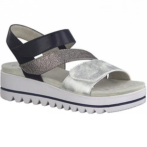 The Jana Milan is a platform sandal that has stylish solid and mirrored detailing with three adjustable straps and cushioned footbed for a secure fit and comfort. With a 40mm wedge, this casual pair also has a rubber outsole with enhanced grip.