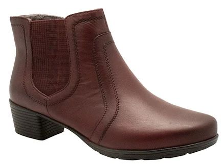 Leather ankle boot with stretch panel for adjustment and zip for easy access.