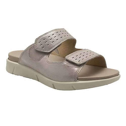 Easy to slide on leather sandal with dual hook and loop closures to provide superior adjustment. On trend white outsole contrasts perfectly with the leather uppers.
