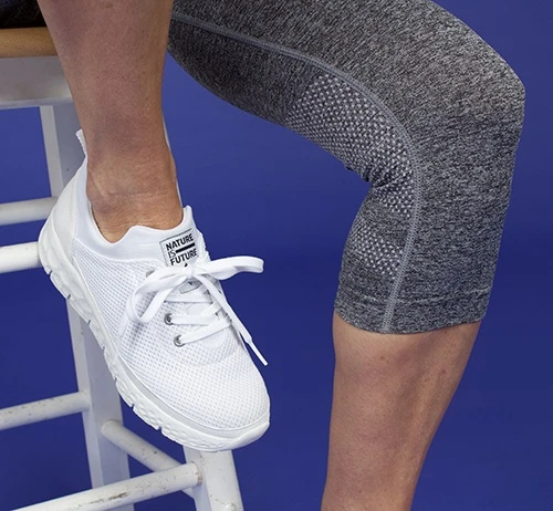 The Wing trainer features a soft textile upper, which is made from 100% recycled bottles from Italy. The Wing is a sock fit with a good stretch around the openning, the laces can be used to loosen or tighten the fit.