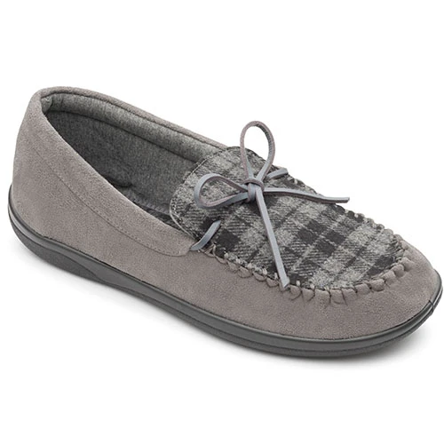 Mens moccasin style slipper designed with a contrasting vamp, lace detail and hard wearing soles. The memory foam insoles mould to your feet for amazing comfort.
