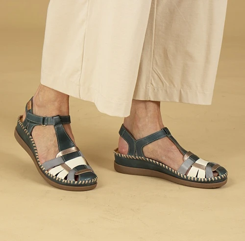 Delightful and summery, the Pikolinos Cadaques 0965 is a supremely comfortable wedge fisherman sandal for the lady who likes good foot coverage with a Mediteranean touch of glamour.