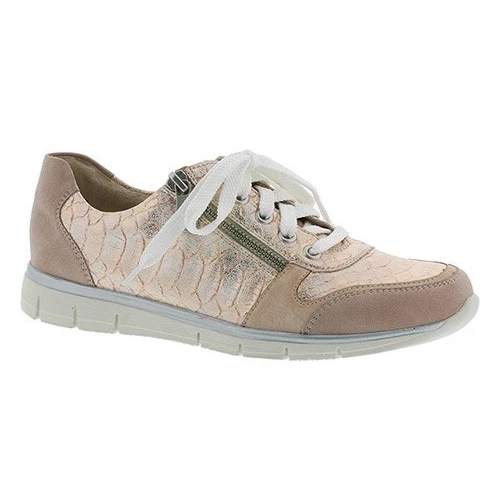 Vendee is an active inspired casual with stylish pattern uppers. It has a zip and laces, the zip provides very easy access and the laces offer adjustment. Low wedge outsole.