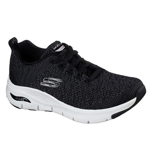 Supportive trainer with an engineered knit mesh fabric upper. Arch Fit insole system with podiatrist certified arch support. Removable comfort insole designed for walking comfort. Resilient cushioning system promotes better foot guidance. Flexible traction outsole.