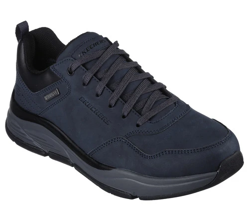 Style and comfort combines in the waterproof Skechers Relaxed Fit®: Benago – Hombre mens outdoor shoe.