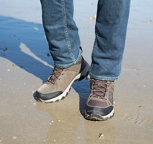 Mid-top trail hiker, suitable for relaxed walks or Rugged Trails. Fit is relaxed meaning more room in the toe box.
