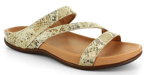 An exquisitely graceful strappy sandal that offers chic styling and foot-hugging support with three slim-line straps. Crafted from high quality supple natural leathers with built in supportive footbed technology.