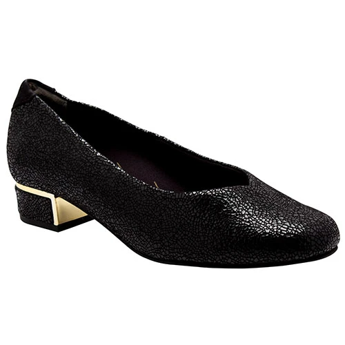 Dress, low heel court shoe with stylish print leather uppers and smooth leather linings. Padded underfoot cushioning provides added comfort. Comfortable low heel with contrast detail for added elegance.