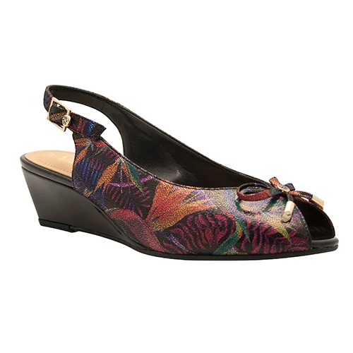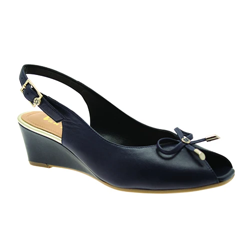 Woodburn is a sling back court shoe with a feminine peep toe. It benefits from soft leather uppers, smooth leather linings and a leather covered padded insole. It is wider fitting with a buckle fastening to provide adjustment and a secure fit. Wedge heel adds height without sacrificing comfort.