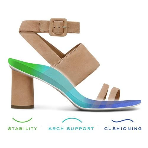 Vionic biomechanical footbed provides three zone comfort offering stability, arch support and cushioning.