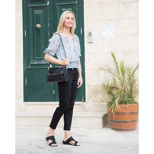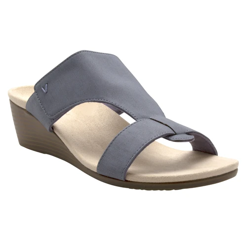 Stylish wedge sandal with soft and breathable textile uppers. Easy to fasten hook and loop strap provides great access for an easy on fit and offers adjustment of fit.