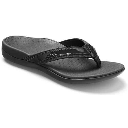 Classically styled flip flop with a comfortable and supportive Vionic biomechanical footbed which provides comfort and support to the arch of the foot and helps the allignment of the foot.