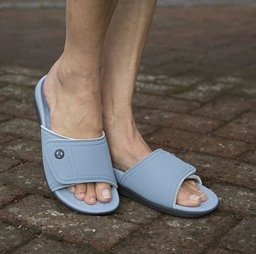 Hook and loop closure offers adjustment and allows the sandal to open out for easy access.